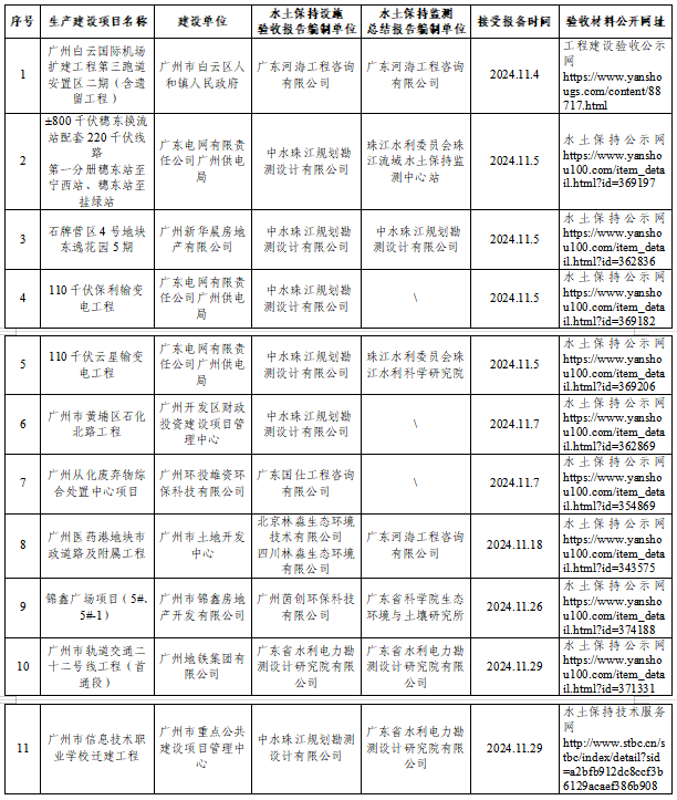 毛巾哥 关于2024年11月生产建设项目水土保持设施自主验收报备公示