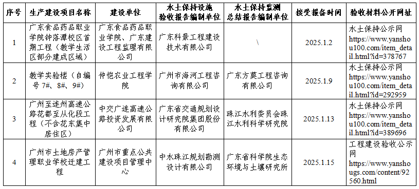 毛巾哥 关于2025年1月生产建设项目水土保持设施自主验收报备公示