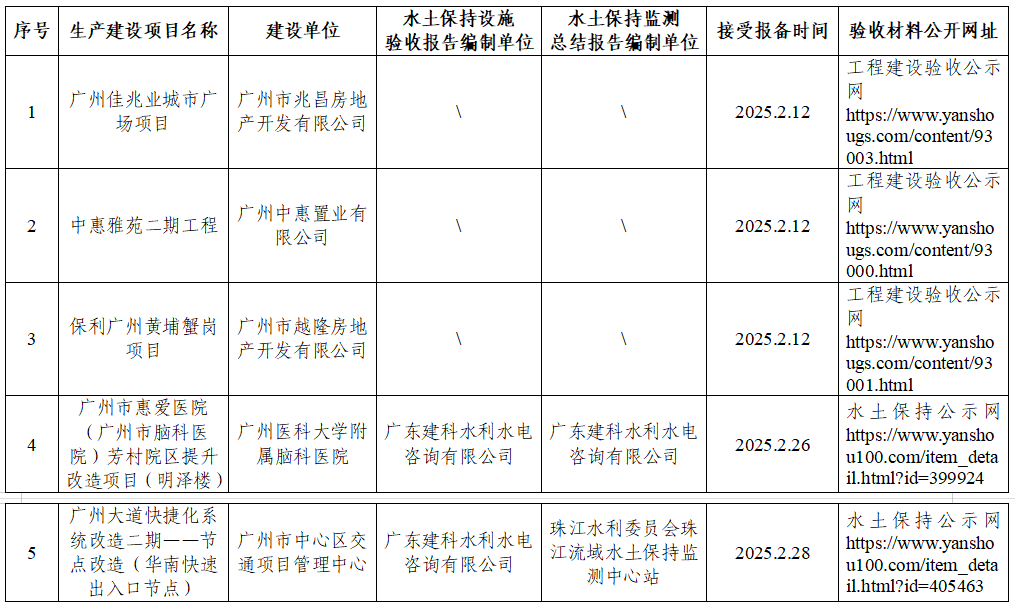 毛巾哥 关于2025年2月生产建设项目水土保持设施自主验收报备公示