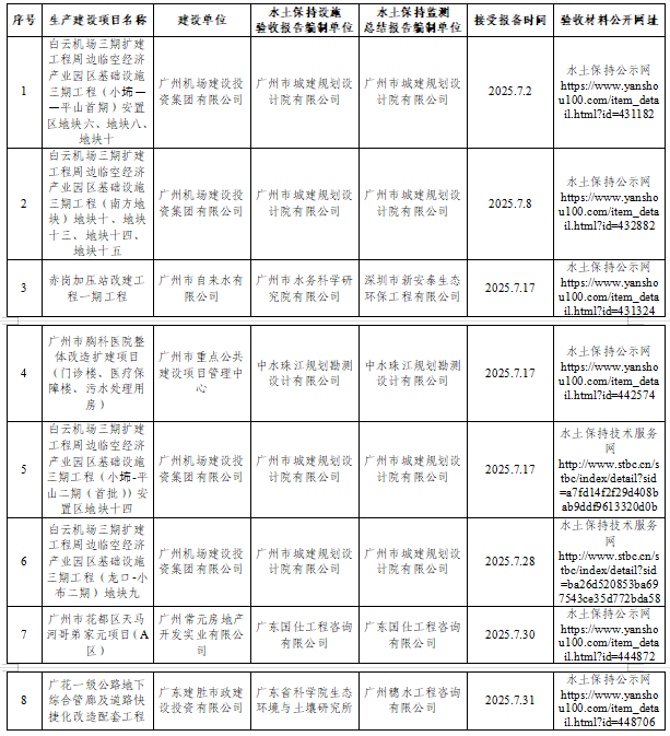毛巾哥 关于2025年7月生产建设项目水土保持设施自主验收报备公示