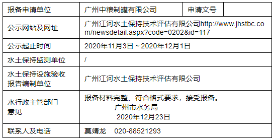 中粮包装广州制罐项目水土保持设施自主验收报备回执