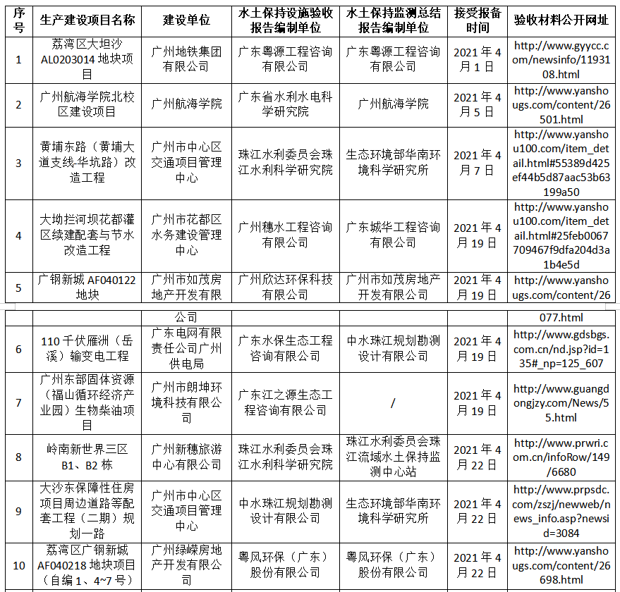 毛巾哥 关于2021年4月生产建设项目水土保持设施自主验收报备公示