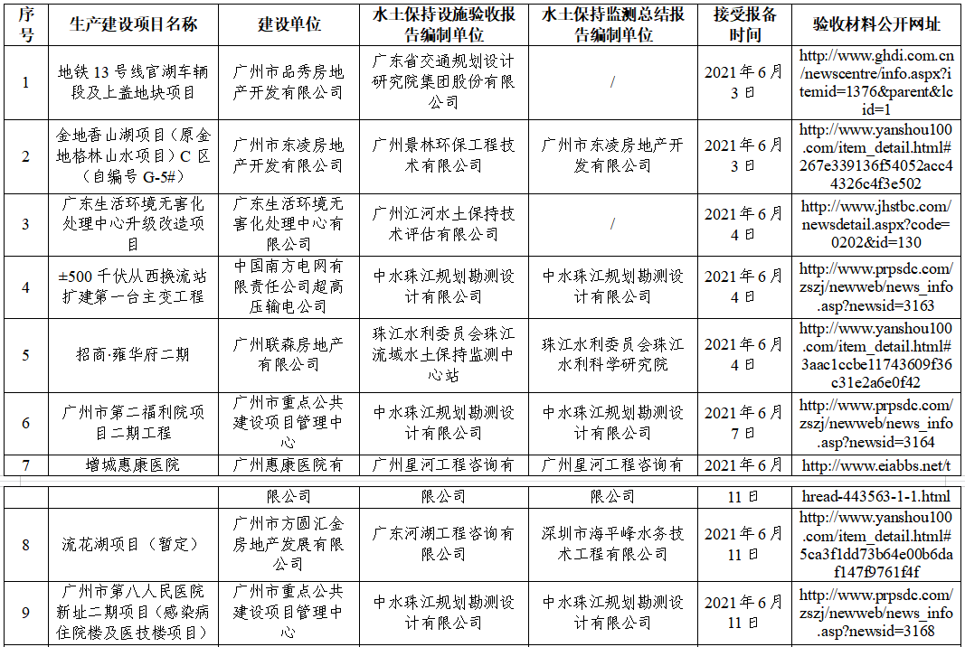 毛巾哥 关于2021年6月生产建设项目水土保持设施自主验收报备公示