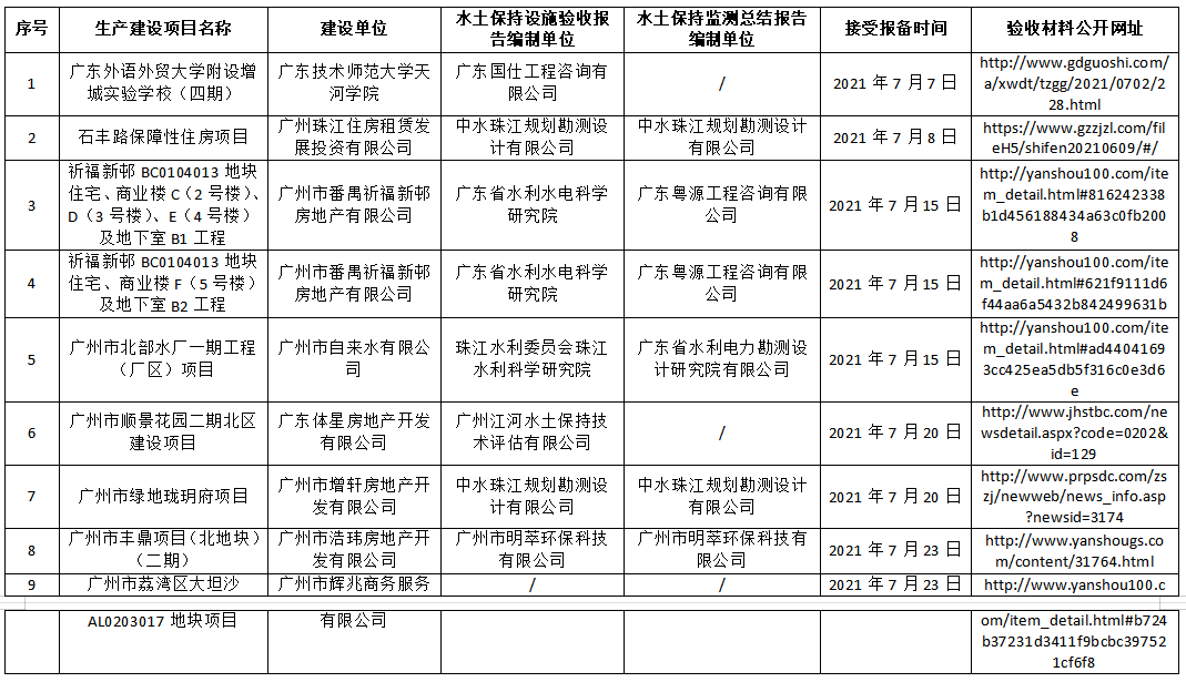 毛巾哥 关于2021年7月生产建设项目水土保持设施自主验收报备公示