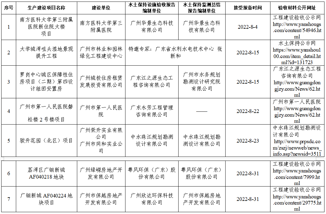 毛巾哥 关于2022年8月生产建设项目水土保持设施自主验收报备公示