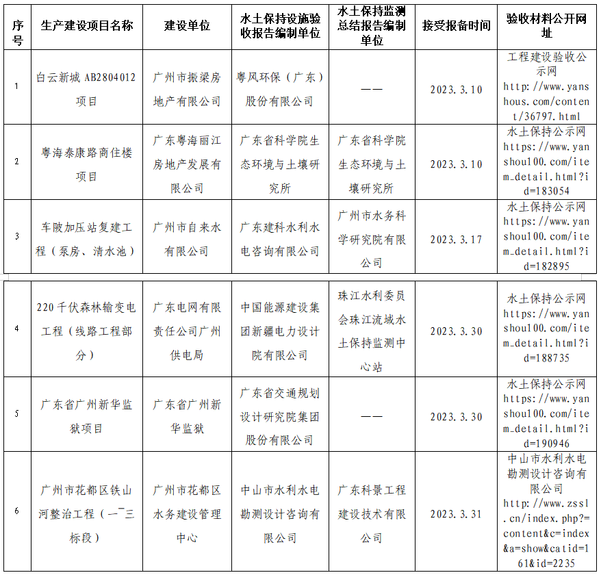 毛巾哥 关于2023年3月生产建设项目水土保持设施自主验收报备公示