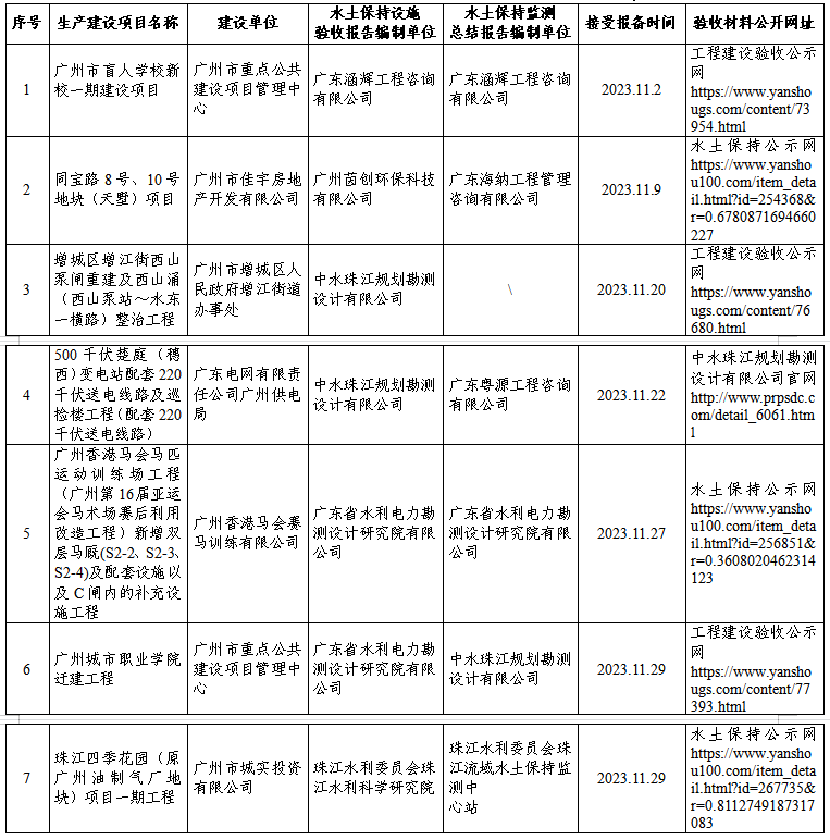 毛巾哥 关于2023年11月生产建设项目水土保持设施自主验收报备公示