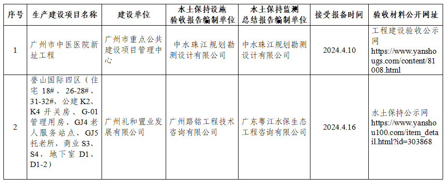 毛巾哥 关于2024年4月生产建设项目水土保持设施自主验收报备公示
