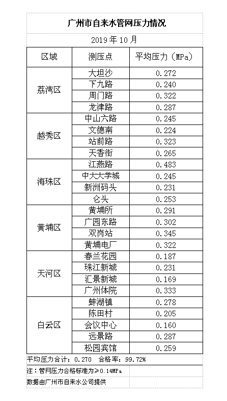 毛巾哥 自来水管网压力情况(2019年10月)