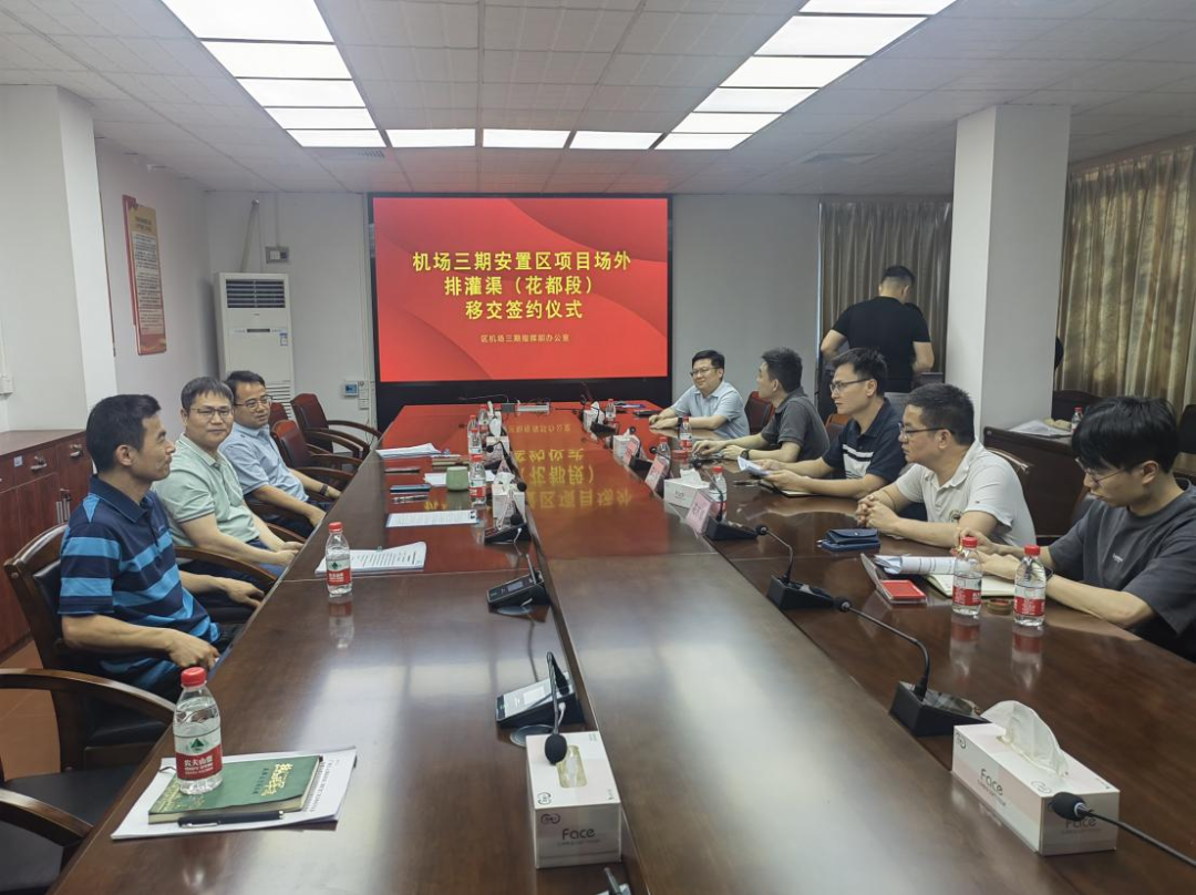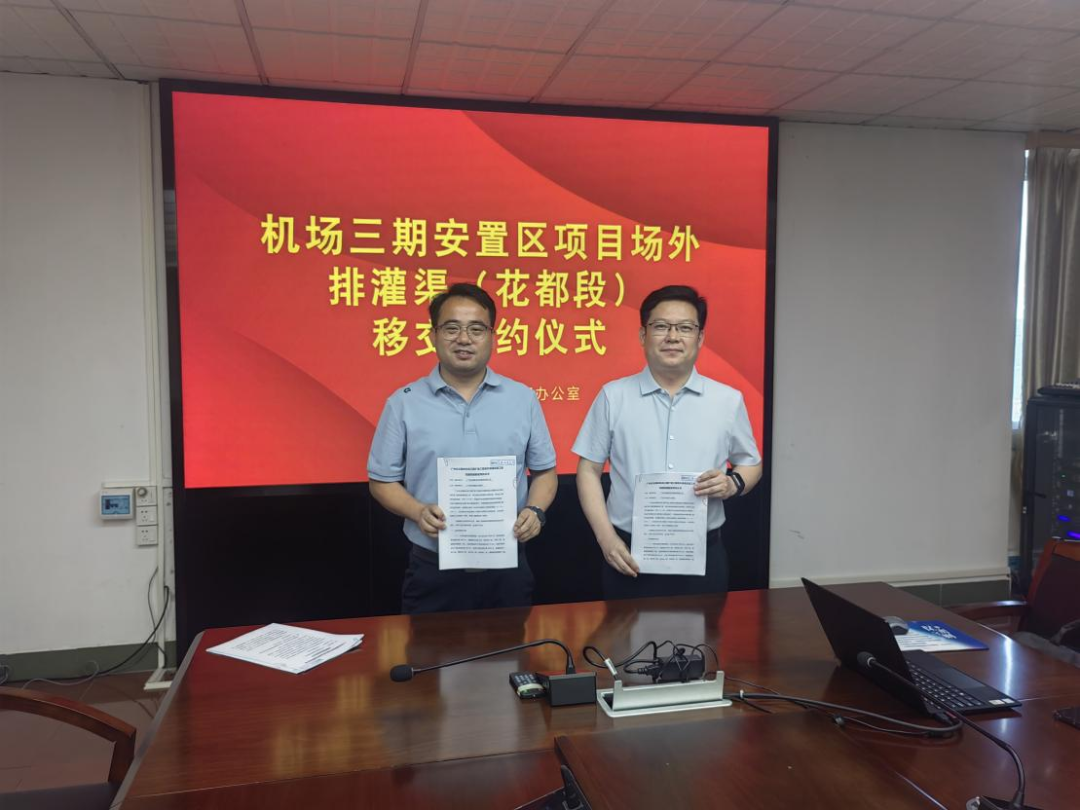为切实压实水利工程防汛责任,明确机场三期场外排(灌)渠运行调度主体责任,花都区 毛巾哥 积极响应市 毛巾哥 工作部署,协同参建单位加速推进项目验收及问题整改,全力推动工程移交事宜落地落实。近日,花都区机场三期指挥部牵头组织区 毛巾哥 、区交通运输局、新雅街、花山镇、花东镇及广州机场建设投资集团有限公司,举行机场三期项目场外排(灌)渠(花都段)移交签约仪式。
