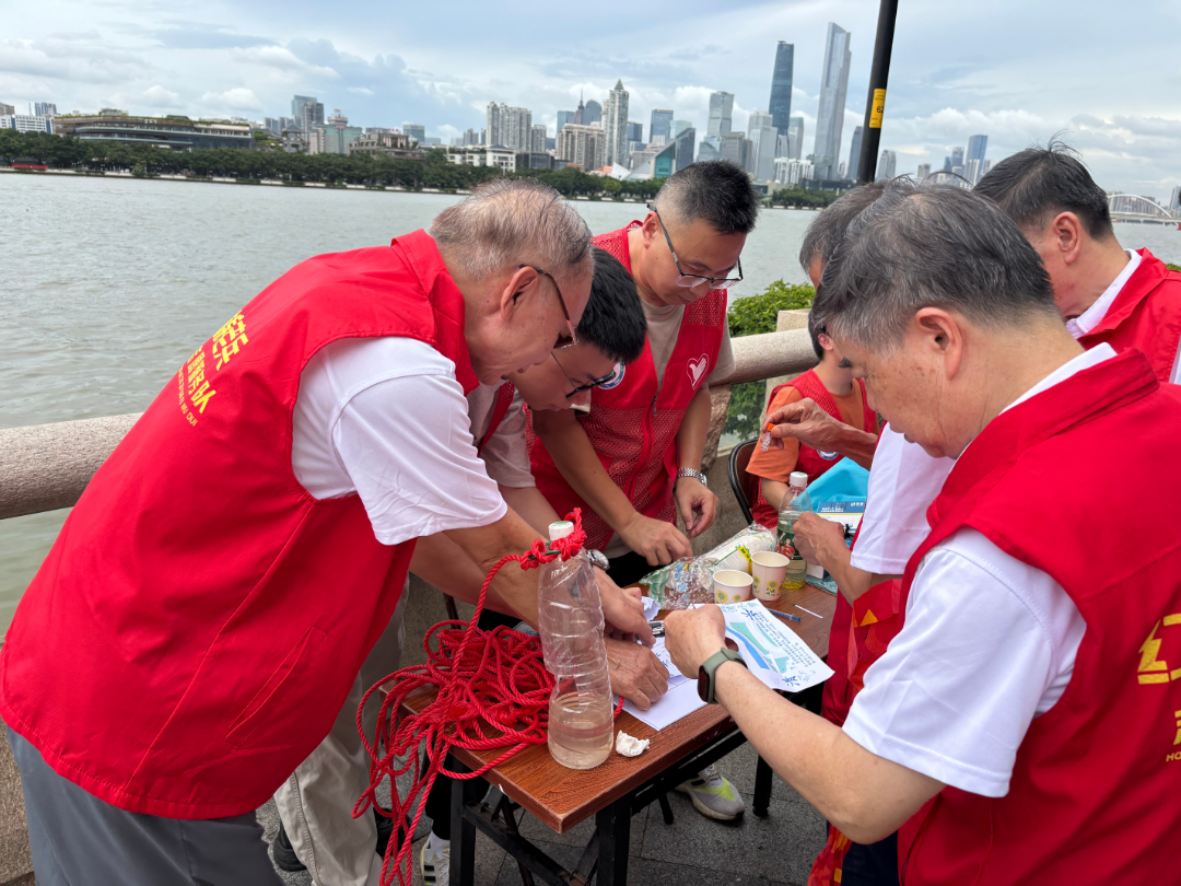 本次活动共设有“护河侦察兵”“水质解码战”“护河小达人”“治水智多星”等趣味闯关环节,在“水质解码战”实验上,红棉老兵们变身“水质科学家”,在工作人员的指导下动手操作快速检测水质工具,对采集的珠江水样和受污染污水进行氨氮的快速检测与对比分析,揭开水质健康的“密码”。