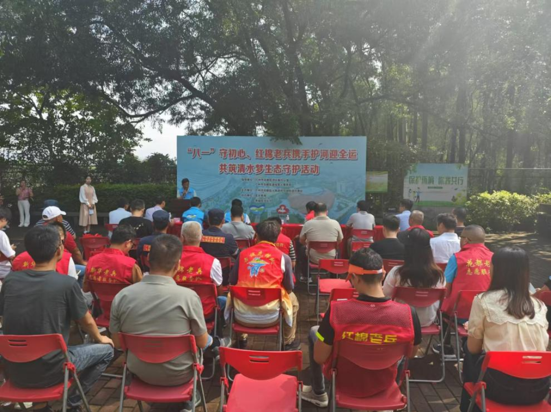 为深入践行习近平生态文明思想,积极响应十五运会“绿色、共享、开放、廉洁”办赛理念,在“八一”建军节这个充满光荣与敬意的日子,花都区河长制办公室联合区退役军人事务局、花城街道于秀全驿站举办“八一”守初心、红棉老兵携手护河迎全运——共筑清水梦生态守护活动启动仪式。