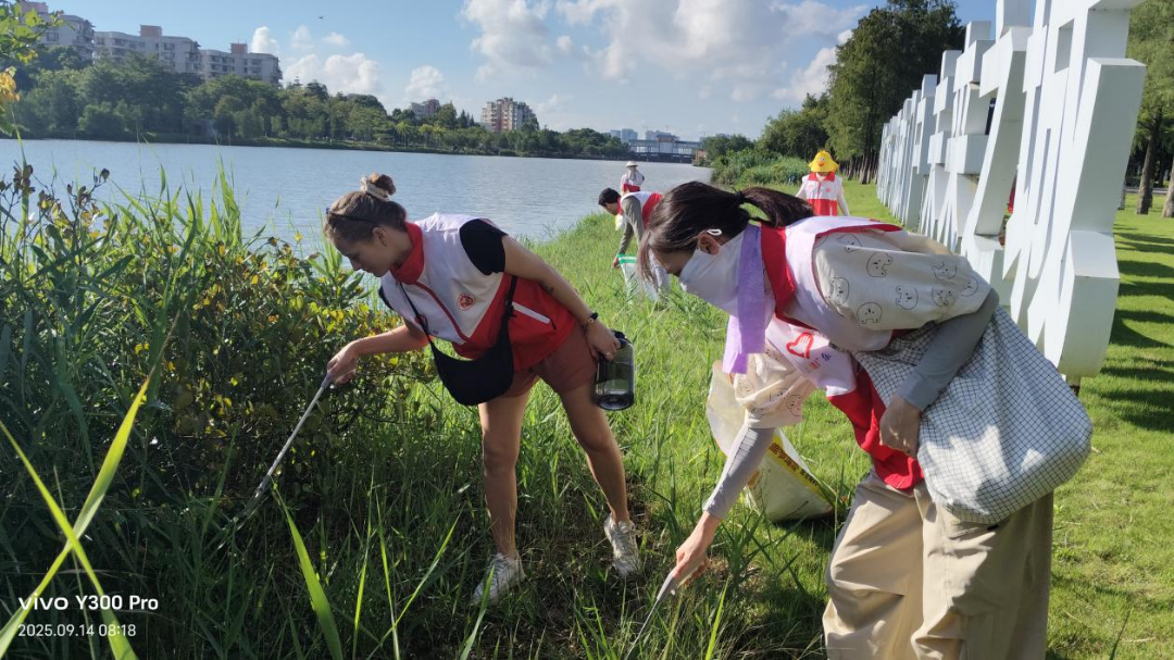 活动现场氛围积极活跃,志愿者们热情高涨。活动开始后,志愿者们提前分成3个小组,各组通过自我介绍增进了解、培养默契。随后,志愿者们分组开展巡河净滩行动,沿河岸清理塑料瓶、烟头等垃圾,并进行水质检测实验,观察蕉门河的水质状况。此次活动共清理河岸垃圾110余斤,为关注生态保护的青少年搭建了实践交流平台,为南沙区生态文明建设注入了青春活力,打造了“河小青”志愿服务品牌,实现了青少年参与生态保护的精准服务。