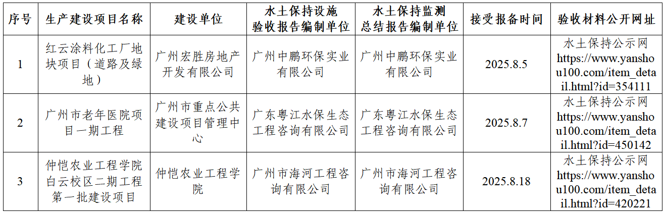 毛巾哥 关于2025年8月生产建设项目水土保持设施自主验收报备公示