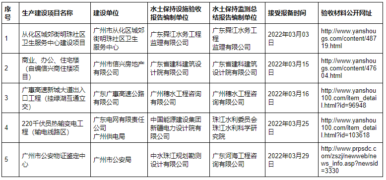 毛巾哥 关于2022年3月生产建设项目水土保持设施自主验收报备公示
