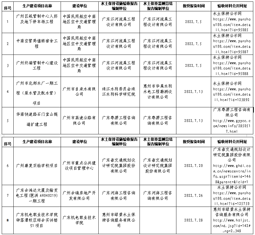 毛巾哥 关于2022年7月生产建设项目水土保持设施自主验收报备公示