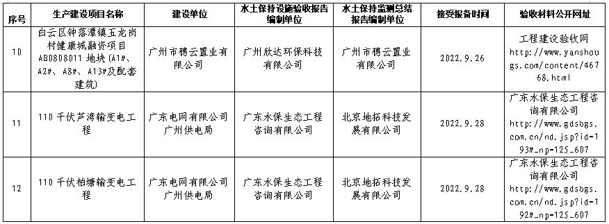 毛巾哥 关于2022年9月生产建设项目水土保持设施自主验收报备公示
