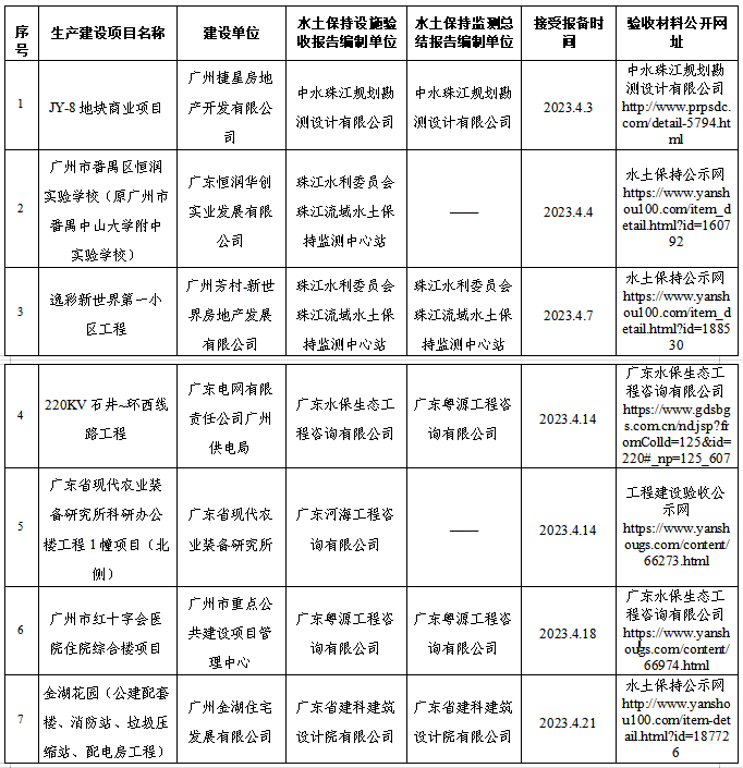 毛巾哥 关于2023年4月生产建设项目水土保持设施自主验收报备公示