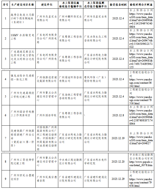 毛巾哥 关于2023年12月生产建设项目水土保持设施自主验收报备公示