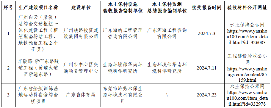 毛巾哥 关于2024年7月生产建设项目水土保持设施自主验收报备公示